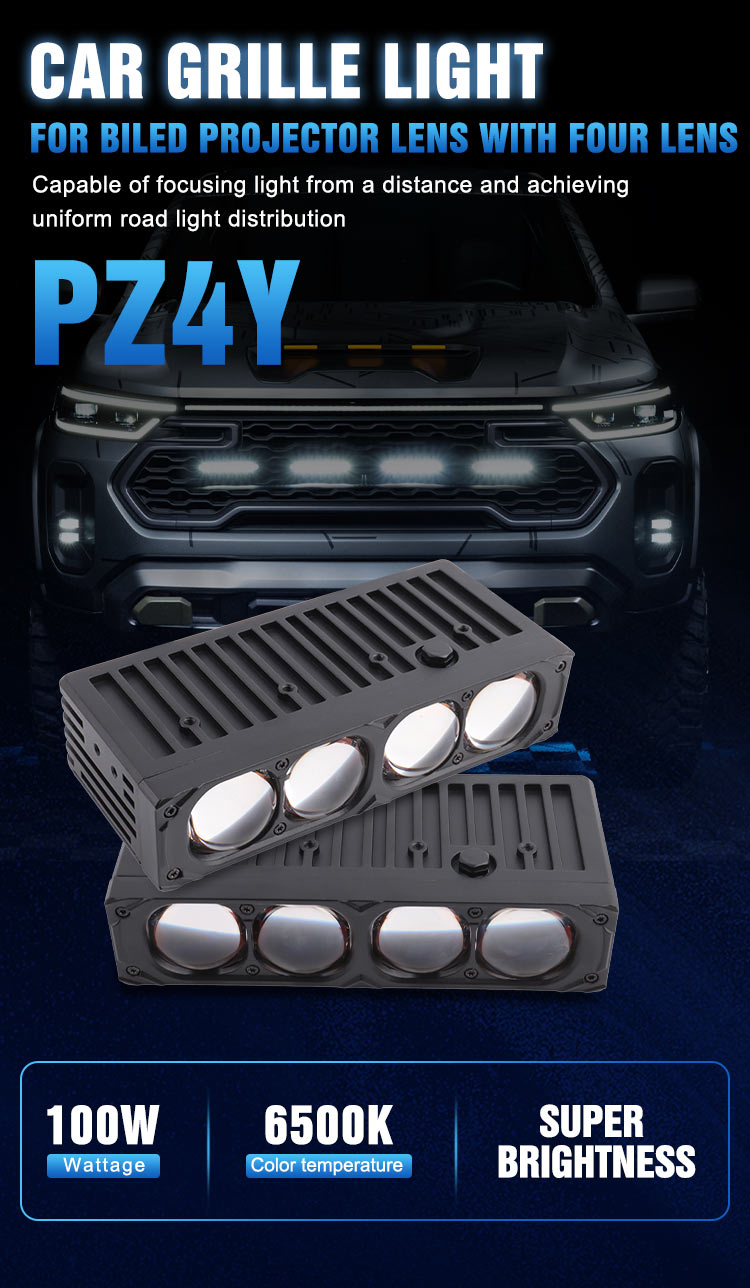 Car Light Accessories Car Matrix Grill Light 4 Lens 100W 6500K Biled Lens Front Led Grill Lights